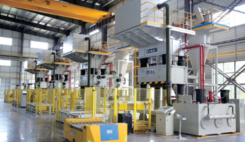 設(shè)備自帶可浮動壓制的浮動梁,保證制品密度的均勻性;并配置布料小車,采用稱重或容積法布料,自動化程度高。