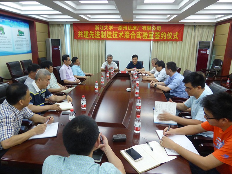 在湖州市被列入“中國(guó)制造2025”試點(diǎn)示范城市及召開(kāi)動(dòng)員大會(huì)后,湖州機(jī)床廠有限公司立即行動(dòng)起來(lái),薛鋒董事長(zhǎng)第一時(shí)間對(duì)大會(huì)精神進(jìn)行傳達(dá)貫徹,同時(shí)結(jié)合本公司正在開(kāi)展的產(chǎn)品轉(zhuǎn)型升級(jí)、高端裝備智能制造規(guī)劃,前往浙江大學(xué)與浙江大學(xué)機(jī)械工程學(xué)院設(shè)計(jì)工程及自動(dòng)化研究所譚建榮院士團(tuán)隊(duì)進(jìn)行面對(duì)面洽談。雙方一拍即合,決定合作建立“浙江大學(xué)—湖州機(jī)床廠有限公司液壓裝備創(chuàng)新設(shè)計(jì)與智能制造聯(lián)合實(shí)驗(yàn)室。